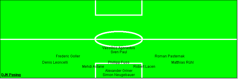 DJK Pasing: Simon Neugebauer - Robert Lacen (68. Matthias Butzke, 80. Lukas Jung), Alexander Griner, Mehdi Astane - Matthias Rühl, Phillipp Fuss, Denis Leoncelli - Roman Pasternak, Sven Paul, Frederic Goller - Vassilios Agorastos (60. Anton Hartl) Tore: 0:1 Frederic Goller (2. / Sven Paul); 0:2 Denis Leoncelli (6. / Matthias Rühl); 1:2 (24.); 2:2 (Foulelfmeter, 47.); 2:3 Mehdi Astane (83. / Anton Hartl) Die DJK Pasing bleibt der Auswärtsschreck der Liga und gewinnt beim Derby gegen den FC Anadolu mit 3:2 Toren. Das Spiel hatte begonnen und bevor die Heimmannschaft richtig auf dem Platz stand, führten die Pasinger schon mit zwei Toren. In der zweiten Minute bereits setzte sich Sven Paul nach einem langen Einwurf auf der rechten Außenbahn durch und spielte einen mustergültigen Pass in den Lauf von Frederic Goller, der aus kurzer Distanz das Tor erzielte. Kurz darauf war es Denis Leoncelli, der den Ball knapp außerhalb des Strafraums von Matthias Rühl abgelegt bekam und mit einem satten Rechtsschuss den Ball im langen Eck unterbrachte. Nun zogen sich die Gäste etwas zurück und ließen Anadolu kommen, wobei die DJK-Abwehr sehr agil agierte und viele defensive Zweikämpfe gewann. So musste es eine Standardsituation sein, die den Anschlusstreffer für den FC brachte. Ein geschlenzter Freistoss aus 25 Metern halblinker Position schlug im Winkel ein. Bis zur Halbzeit neutralisierten sich die Teams in einem flotten Spiel, das für ein Derby sehr fair geführt wurde. Der Plan der DJK Pasing, den Spielstand in der zweiten Halbzeit erstmal zu verwalten, wurde sofort über den Haufen geworfen, als der Unparteiische direkt nach dem Wiederanpfiff auf Strafstoss für Anadolu entschied, der Spieler verwandelte sicher. Es entwickelte sich ein sehr munteres Spiel mit offenem Schlagabtausch, in dem beide Teams auf den Entscheidungstreffer drängten. Dennoch dauerte es bis kurz vor Schluss, ehe sich der eingewechselte Anton Hartl durch den FCA-Strafraum dribbelte und mit einem wunderbaren Heber den aufgerückten Mehdi Astane in Szene setzte, dessen Kopfball auf der Linie noch geklärt werden konnte, doch der Nachschuss fand seinen Weg ins Ziel. Die Schlussoffensive des FC Anadolu konnte am Ergebnis nichts mehr ändern. |