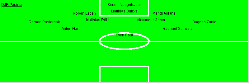 DJK Pasing: Simon Neugebauer - Robert Lacen, Matthias Butzke, Mehdi Astane (46. Denis Leoncelli) - Roman Pasternak, Matthias Rühl, Alexander Griner, Bogdan Zunic - Anton Hartl, Raphael Schwarz (46. Vassilios Agorastos) - Sven Paul Tore: 1:0 Sven Paul (22. / Raphael Schwarz); 1:1 (74.); 2:1 Anton Hartl (76.); 2:2 (77.) Tolles Fussballwetter und ein frischgemähter Rasen waren bereit für den Auftritt der Pasinger 1.Mannschaft auf dem Hauptplatz in 2010. Doch das Spiel begann sehr verhalten und war von Fehlpässen und Ungenauigkeiten geprägt. Beide Mannnschaften versuchten es mit langen Bällen. Der DJK kam so schnell zu guten Möglichkeiten. Aber auch Pullach hatte hier keine Punkte zu verschenken und kam durch individuelle Fehler der DJK Hintermannschaft immer wieder einfach vor den heimischen Strafraum. In der 22.Min endlich eine schöne Kombination zwischen Schwarz und Paul, welche gleich zum 1:0 führte. Die erhoffte Sicherheit stellte sich trotzdem nicht ein. Weiter ein sehr schwaches Kreisligaspiel. Auch in der zweiten Halbzeit plätscherte das Spiel weiter vor sich hin. Nach einer langen Flanke von aussen wurde Pullach praktisch zum Ausgleich eingeladen. Überraschenderweise kam Pasing im Gegenzug durch eine perfekt getimte Flanke von Leoncelli auf Hartl zur erneuten Führung. Keine 2min wieder die kalte Dusche für die Heimmannschaft. Nach einem klaren Handspiel eines Pullachers lupfte dieser den Ball Richtung Elfmeterpunkt wo ein Stürmer ungestört vollendet. Insgesamt ein schwacher Auftritt von beidem Mannschaften. Für die DJK verlorene Punkte im Kampf um die Tabellenspitze. |