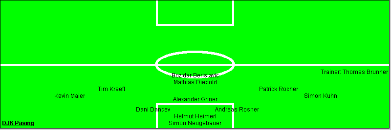 TSV Forstenried: Michael Zander, Julius Schmidt, Stefan Grundler, Martin Schmitt, Peter Tempfli (90. Peter Scharf), André Scharf, Zoran Obradovic, Andreas Mesterhazy, Boby Tomic, Sanel Pajdan, Richard König (80. Stefan Frauendorfer); Trainer: Rudi Böck DJK Pasing: Simon Neugebauer - Andreas Rosner, Helmut Heimerl, Dani Dancev - Simon Kuhn, Alexander Griner (73. Christian Groß), Kevin Maier (37. Denisz Karatas) - Patrick Rocher, Tim Kraeft - Mathias Diepold, Bozidar Berislavic (46. Goran Negic); Trainer: Thomas Brunner Tore: Fehlanzeige Aufwärtstrend bei der DJK weiter zu erkennen. So das Fazit nach dem Spiel beim TSV Forstenried. Am Ende ein verdientes 0:0. Dabei reiste die DJK stark ersatzgeschwächt nach Forstenried. Neben den Langzeitverletzten Alili, Paul, Butzke, Weiland wurde unter der Woche bei Mario Hilble ein Bänderriss im Sprunggelenk diagnostiziert. Des weiteren kamen Negic und Karatas erst später zum Spiel. So begann die DJK mit einer völlig anderen Mannschaft als noch in der Vorwoche. Die erste Hälfte bestimmten klar die Gastgeber. Die DJK war bemüht hinten gut zu stehen. Bis auf einen Lattenschuss hatten die Gastgeber auch keine Chancen zu verzeichnen. Die beste Chance der DJK hatte Routinier Berislavic doch sein Schuss geht knapp über das Tor. Nach der Pause brachten die Einwechslungen von Negic und Karatas frischen Wind ins Spiel der DJK. Nun war man überlegen und drückte die Gastgeber in die eigene Hälfte. Doch bis zum Ende blieben die Chancen der DJK ungenutzt und es blieb bei einem Punkt. Auf Grund der zwei verschiedenen Halbzeiten ein gerechtes Ergebnis. Am nächsten Wochenende empfängt die DJK den FC Viktoria. Dort sollte man wieder drei Punkte anvisieren um sich von dem Relegationsplatz auf dem man sich nun befindet wieder zu entfernen. |