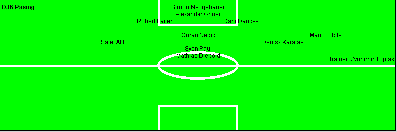 DJK Pasing: Simon Neugebauer - Robert Lacen, Alexander Griner, Dani Dancev - Goran Negic (75. Andreas Rosner), Mario Hilble - Safet Alili (57. Anton Hartl), Denisz Karatas - Sven Paul, Mathias Diepold - Florian Probstmeier (77. Lukas Jung); Trainer: Zvonimir Toplak Tore: 1:0 Mathias Diepold (12. / Mario Hilble); 2:0 Florian Probstmeier (14. / Mario Hilble); 3:0 Mario Hilble (47. / Sven Paul); 4:0 Sven Paul (85. / Lukas Jung); 5:0 Sven Paul (87. / Andreas Rosner) Endlich ist es wieder so weit. Der Ball läuft wieder an der Agnes-Bernauer Straße. Zu Gast war Tabellenschlusslicht FC Hertha. Man wusste, dass es gegen die Herthaner kein Selbstläufer wird und hatte sich von Anfang an viel vorgenommen. So begann die DJK auch sehr druckvoll und spielte gefällig nach vorne. Der verdiente Lohn lies auch nicht lange auf sich warten. In der 12. Minute wird Hilble auf der halblinken Seite frei gespielt dieser sieht den mitgelaufenen Diepold und der wiederum hat keine Probleme den Ball im leeren Tor unterzubringen. Nur zwei Minuten später fällt das 2:0. Wiederum Hilble flankt auf Probstmeier und dieser versenkt den Ball mit einem wuchtigem Kopfball im Tor. Danach zog sich die DJK etwas zurück und die Herthaner kamen besser ins Spiel ohne allerdings gefährlich vor das Gastgeber Tor zu kommen. Die besseren Chancen hatte weiter die DJK. Doch weder Paul, Alili oder Hilble brachten den Ball im Tor unter. So blieb es beim 2:0 zur Pause. Über ein 5:0 hätten sich die Gäste auch nicht beschweren können. Nach der Pause legte die DJK sofort wieder los wie die Feuerwehr. Und so dauerte es keine zwei Minuten bis zur Entscheidung. Von links flankt Paul auf den zweiten Pfosten, Hilble nimmt den Ball am Fünfmeter Eck an und schiebt den Ball an dem auf einen Querpass spekulierenden Torwart ins Tor vorbei. Damit war das Spiel gelaufen. Es entwickelte sich nun ein lockeres Trainingsspielchen bei dem die DJK kaum noch gefordert wurde. In der 75. scheiterte Diepold noch mal an der Latte bevor es Paul vorbehalten war mit einem Doppelschlag den 5:0 Endstand herzustellen. Das 4:0 fiel nach Flanke von Jung per Kopfball und das 5:0 aus stark abseitsverdächtiger Position nach Zuspiel von Rosner. Am Ende ein hochverdienter Sieg der nie in Gefahr war. Sicher darf man die schwachen Gäste nicht als Maßstab für die kommenden Aufgaben nehmen. Aber auf diese Leistung kann man aufbauen. Ebenfalls positiv zu erwähnen ist, dass die drei Neuzugänge sich sehr gut in die Mannschaft eingefügt haben und, auch wenn Jung und Hartl erst in der zweiten Hälfte zum Einsatz kamen, eine ordentliche Leistung boten. Am nächsten Samstag fährt man zur Reserve des SV Pullach. Mit einem Sieg könnte könnte man einen weiteren Schritt Richtung Nichtabstieg machen |