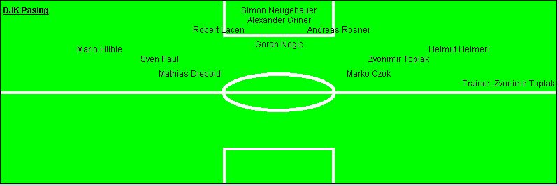 DJK Pasing: Simon Neugebauer - Robert Lacen, Alexander Griner, Andreas Rosner - Mario Hilble (86. Denisz Karatas), Goran Negic, Helmut Heimerl (82. Safet Alili) - Sven Paul, Zvonimir Toplak - Mathias Diepold, Marko Czok (46. Anton Hartl); Trainer: Zvonimir Toplak Kader: Martin Dauser Tore: 0:1 (82.) Eine bittere Niederlage fing die DJK am Wochenende gegen den Tabellennachbarn aus Forstenried ein. Die Gäste kamen verstärkt mit einigen Spielern aus der A-Jugend Bayernliga Mannschaft zur DJK. Das Spiel begann sehr ausgeglichen. Chancen hatte allerdings nur die DJK. Nach zehn Minuten scheitert Griner mit seinem Kopfball nur knapp. Die beste Chance hatte Diepold nach einer super Kombination von Negic, Paul und Hilble. Doch sein Schuss streift nur den Außenpfosten. So ging es mit einem 0:0 in die Pause. Nach der Pause ging es ähnlich weiter. Forstenried hatte mehr Spielanteile doch die DJK die Chancen. Doch leider blieben sie so harmlos wie schon die letzten Spiele. Sowohl der eingewechselte Hartl als auch Paul scheiterten mit ihren Großchancen. So kam es wie es kommen musste. Die sonst Sattelfeste Hintermannschaft der DJK schläft, der Forstenrieder Stürmer umspielt Griner und versenkt denn Ball mit der ersten Chance zum Siegtreffer. Danach ging bei der DJK nichts mehr und man verliert unnötig das direkte Duell. Nun ist es 5 vor zwölf. Aus den letzten drei Spielen müssen unbedingt 6 Punkte geholt werden um den Gang in die Relegation zu vermeiden.Unter der Woche ist man zu Gast beim SV Pullach 2. Keine leichte Aufgabe. Doch ein Sieg ist Pflicht. |